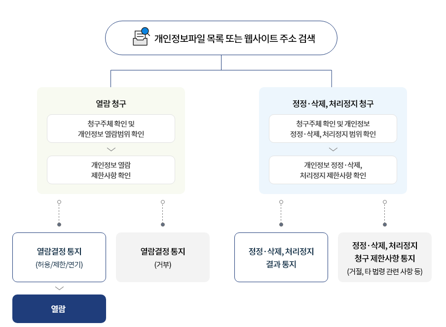 ④ 개인정보 열람 및 처리정지 요구는 ?개인정보 보호법」 제35조 제4항, 제37조 제2항에 의하여 정보주체의 권리가 제한 될 수 있습니다.